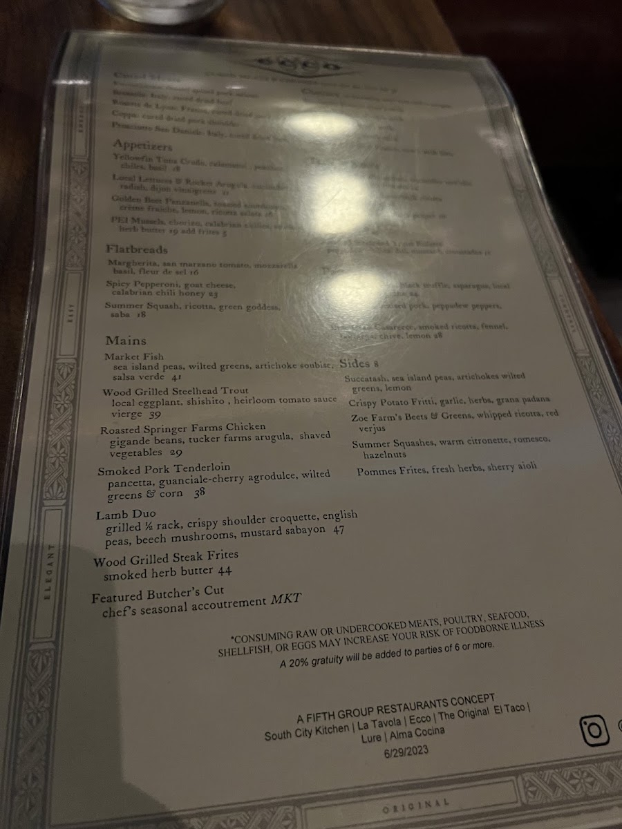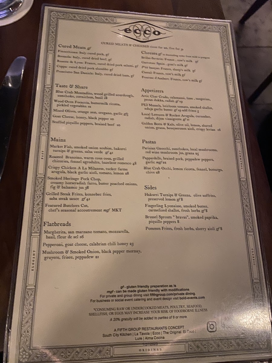 Don't miss the standout entrees like the Smoked Pork Milanese, hailed as unforgettable, and the Roasted Mahi Mahi, embodying freshness and zest. Each dish at Ecco is not just food; it's a meticulous craft that transforms dining into a memorable experience.